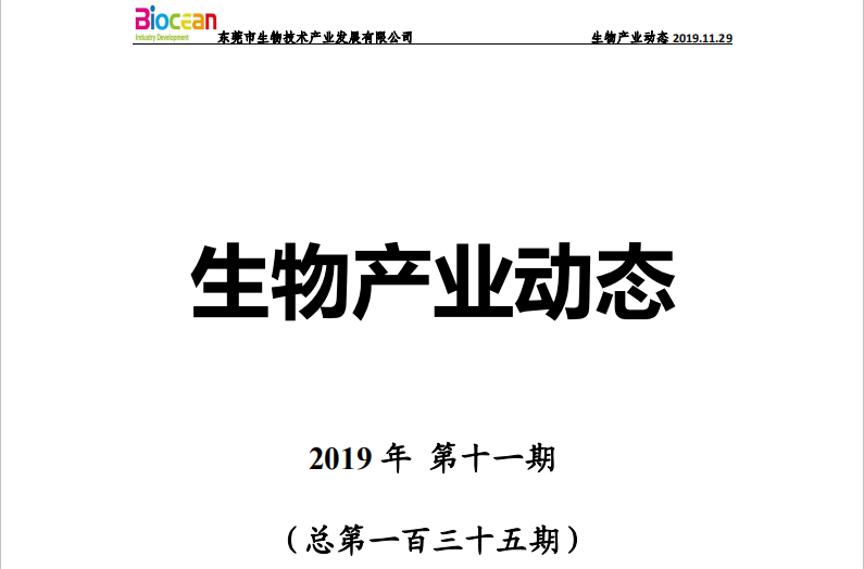 生物產(chǎn)業(yè)動態(tài)2019年第十一期(總第一百三十五期)